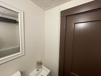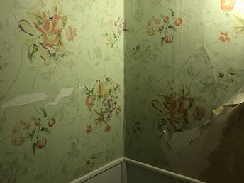 This project involved removing layers of wallpaper, repairing and texturing walls, and then painting the ceilings, walls and wooden trim.